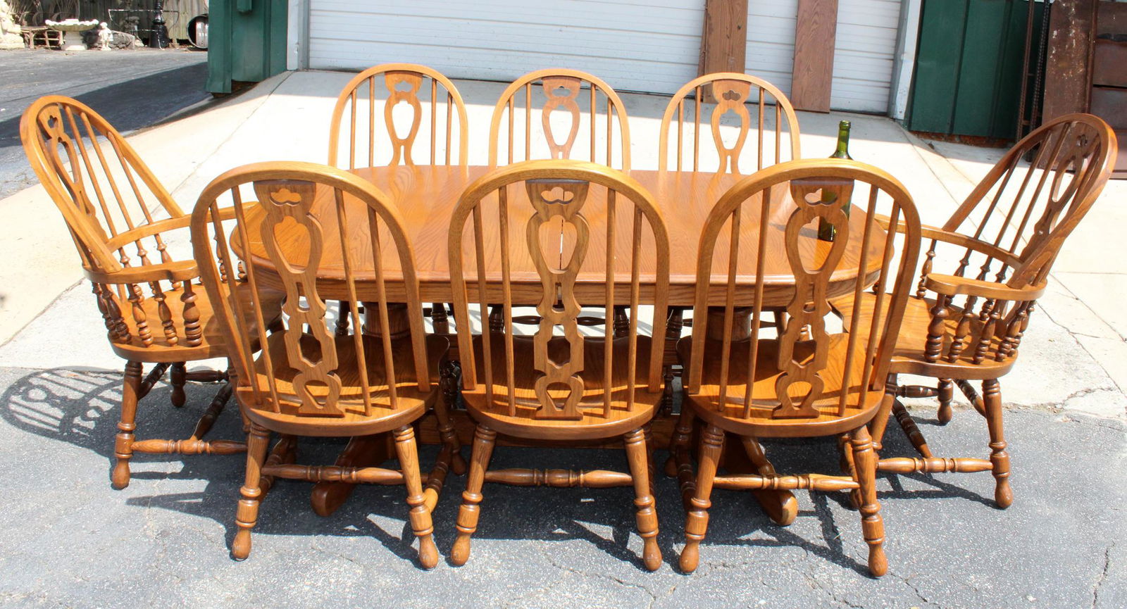 Asking 50 for the pair of them. Nice heavy solid chair, no blemishes. Nice heavy solid chairs, no blemishes. All the rest of them were richardson brothers' chairs. This set comes with a table (3 leafs), 6 chairs and a majestic lighted and mirrored 2 piece hutch.